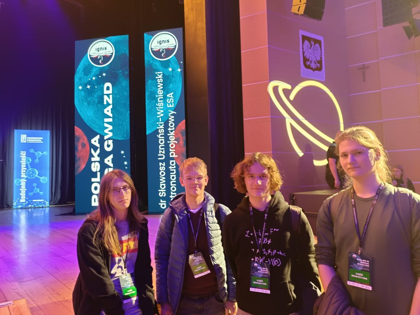 i z pewnością energii i pasji – tego wewnętrznego ognia, który podsyca ciekawość świata, nie zabrakło wśród uczestników spotkania z dr. inż. Sławoszem Uznańskim-Wiśniewskim na Politechnice Rzeszowskiej.  W spotkaniu z   astronautą  wzięli udział uczniowie naszej szkoły: Antoni Gazda, Filip Ćwięka, Bartosz Węgrzyn oraz Antoni Moskal oraz jako opiekun grupy, Pan Prof. Andrzej Ruszała.