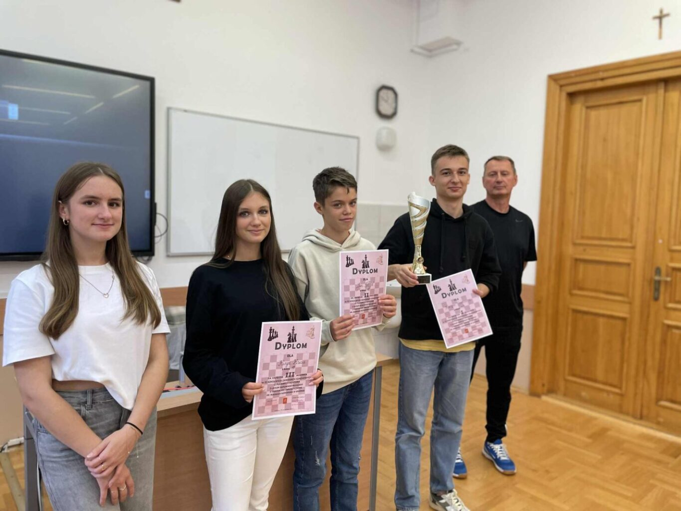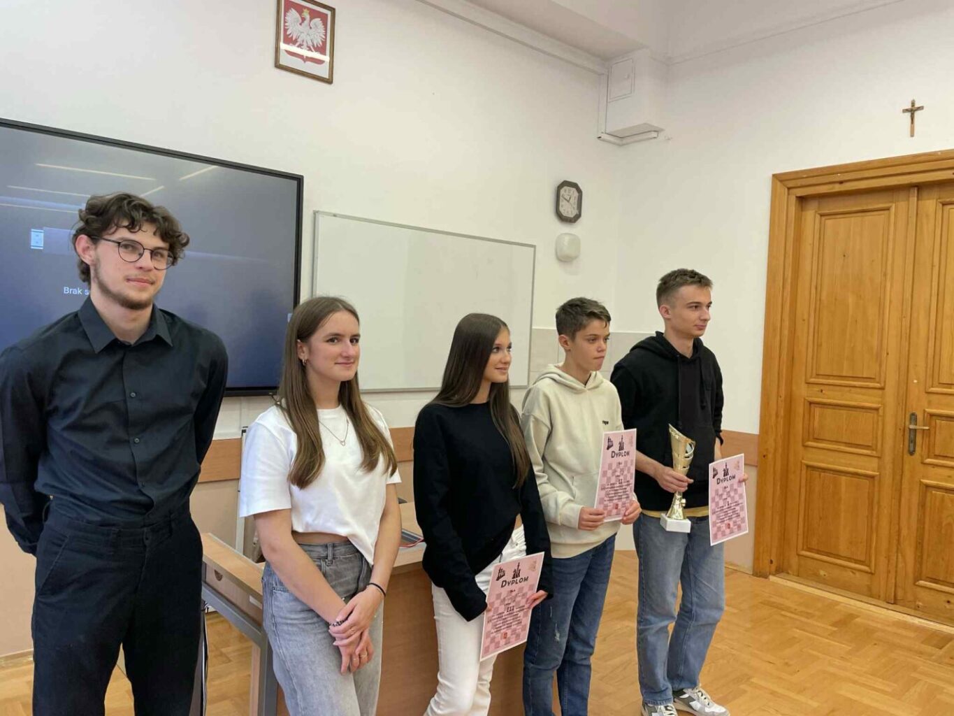 Dziękujemy naszemu absolwentowi Michałowi Guzikowi oraz Kacprowi Świszczowi z kl. IV b za organizację zawodów na terenie szkoły, a Panu Profesorowi Tomaszowi Nowakowskiemu za stałą opiekę nad naszą szkolną drużyną szachową.